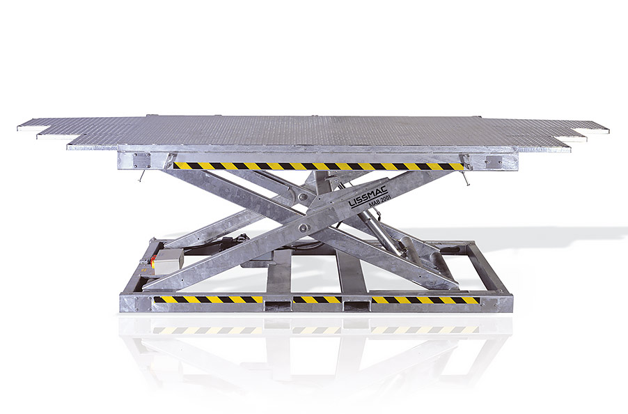 Galvanizli taban çerçevesi, makas ayakları ve platform (kalın panellerle burulma içermeyen tasarım) Her türlü zemine en uygun ayar için üç aynı çekmeceyi kullanarak 1 m’ye kadar kesintisiz olarak uzatılabilir. Kaymayı önleyen alüminyum kontrol plakası Faz kontrolü standart özellik olarak gelir Düşük dara ağırlığı Esnek ayarlanabilen yükseklik ayarı için ayak pedalı ile birlikte gelir – seçilebilir manuel kontrol cihazı Minimum kurulum süreleri – çalışma platformunun kolay ve hızlı montajı / sökülmesi Emniyet valfli çift etkili hidrolik silindir Destekleyici bir taban çerçevesine ve simetrik olarak düzenlenmiş silindirlere tam yerleşime bağlı olarak optimum ağırlık dağılımı Platformun kolay ve hızlı hareket ettirilmesi için isteğe bağlı olarak takılabilen tekerlek seti – tekerlek seti üzerindeki nokta yükü yukarıda verilmiştir. Tüm kaldırma yüksekliği üzerinde sabit yük kapasitesi Ek platformlar eklemek için 400 V bağlantıya sahip merkezi elektrik kontrol panosu C STANDARD EN 280’e göre, tüm duvarcılık çalışma platformlarının istisnasız olarak sadece korkuluklarla kullanılabileceğini açıkça bildiririz. MAB’lar için opsiyonel olarak temin edilebilen taban çerçeveleri ve gerektiğinde koruyucu ray ile retro olarak monte edilebilir. Tüm LISSMAC duvar çalışma platformları, en son endüstri Makine ve Güvenlik kurallarına uygundur.